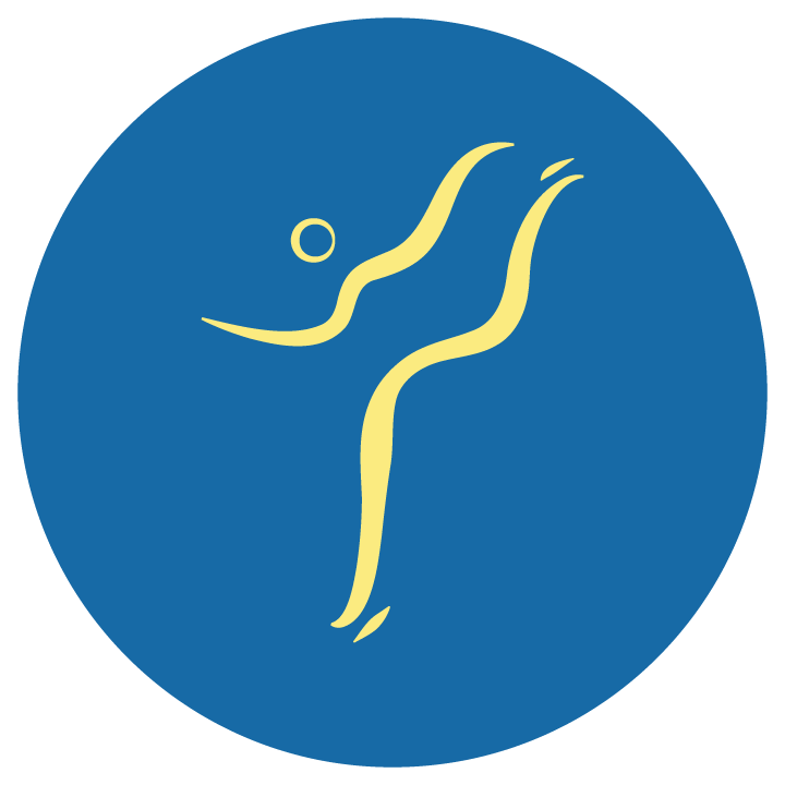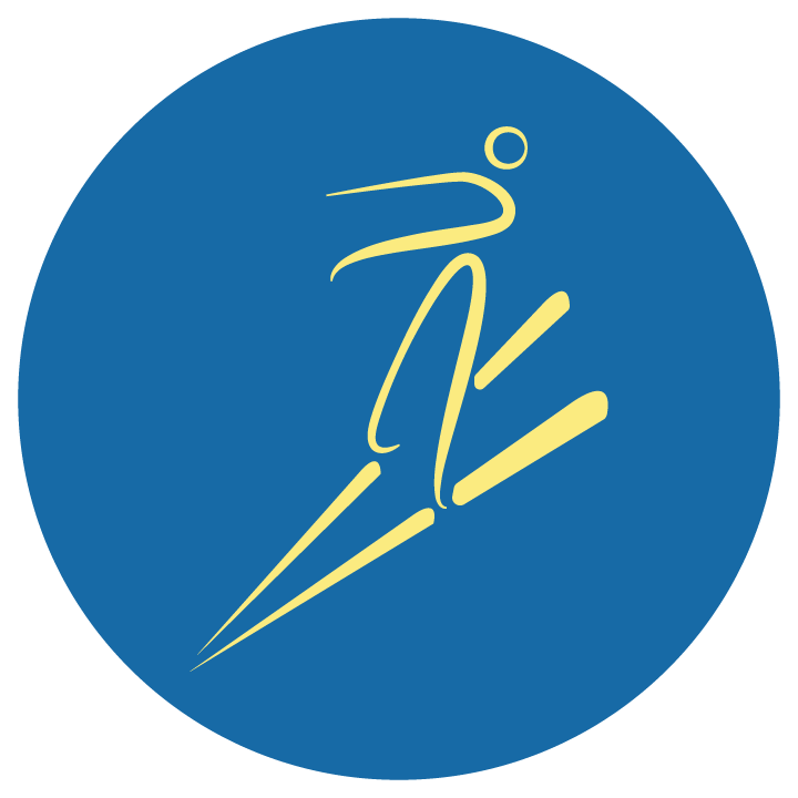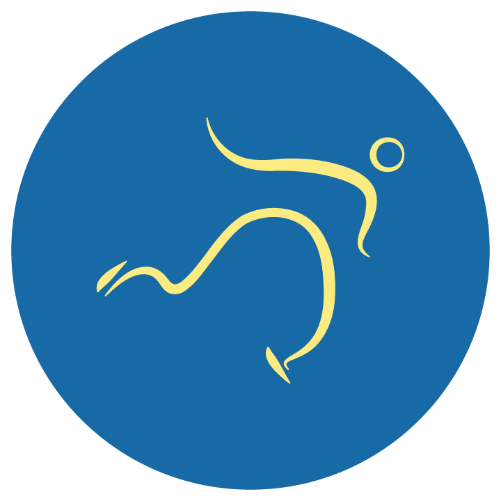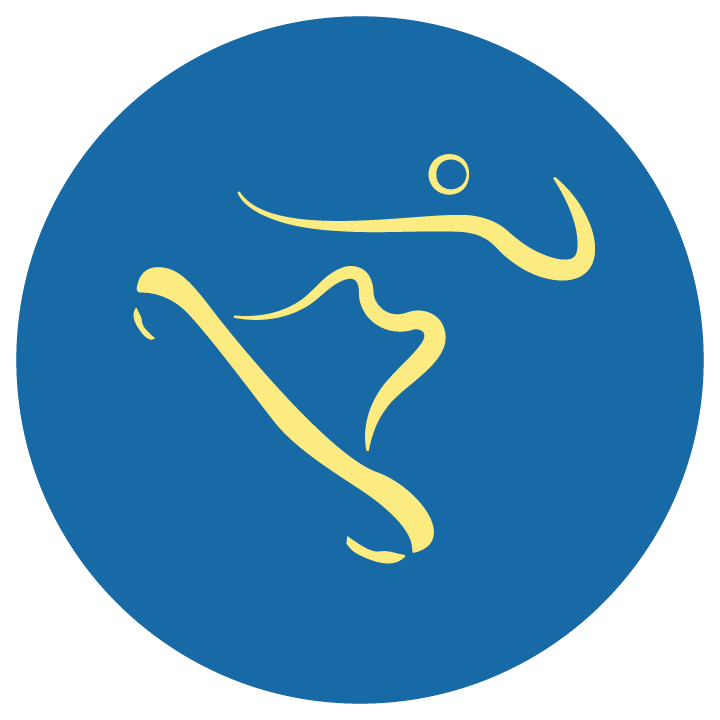 Event pictograms extend the flowing line language of the logo, using continuous strokes to express motion and athletic movement.